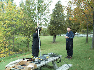 Martin VA3AKY, Carl VE3DNR, and Dave VA3ORP worked on getting Martin's 20m dipole working. It had been cut incorrectly and needed a major operation to get it tuned up and on the air.