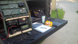 At 2000 UTC on Saturday the driving rain and strong winds hit, and it rained and blew heavily for the rest of the weekend. But, nobody got wet, the tarps did their jobs, and all the radio's survived! Things were so wet and windy out there we actually left everything setup out there when we left Sunday afternoon, and we will go out Monday morning and take everything down in the beautiful weather we have today...........now that Field Day is over !!