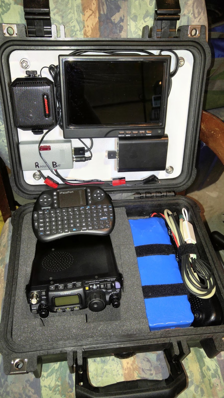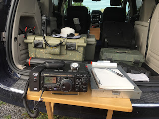 Jim operated PSK31 and I operated SSB, which worked out quite well for us. Jim's rig was an FT-817ND into a multi-band sloper antenna held up by my 33' MFJ mast at one end. I operated my FT-897D into a MFJ 17' collapsible whip antenna up at 8' off the ground, with two 16.5' elevated radials. Both systems worked as advertised.